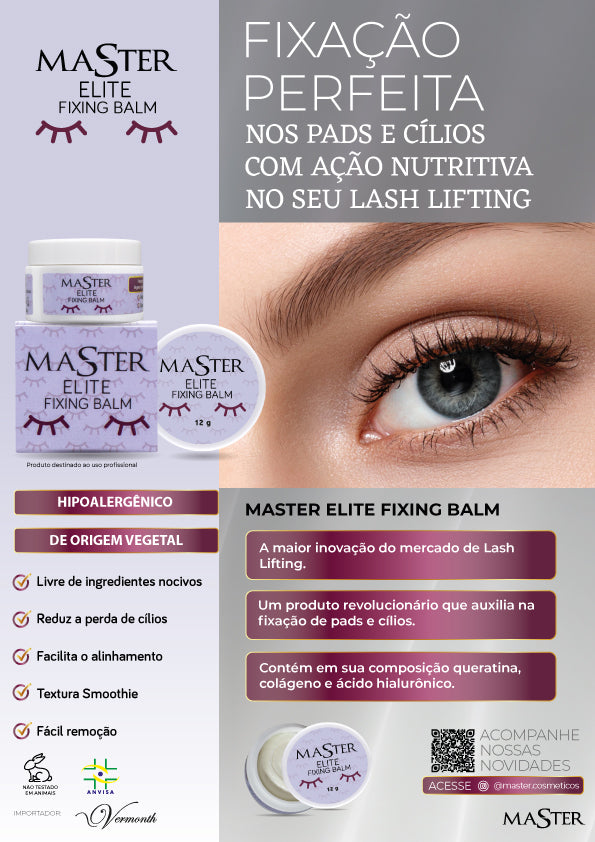 Fixing Balm Master, é um fixador sem cola feito exclusivamente para lifting. Garante uma fixação perfeita com ação nutritiva, em sua composição possui colágeno e ácido hialurônico.