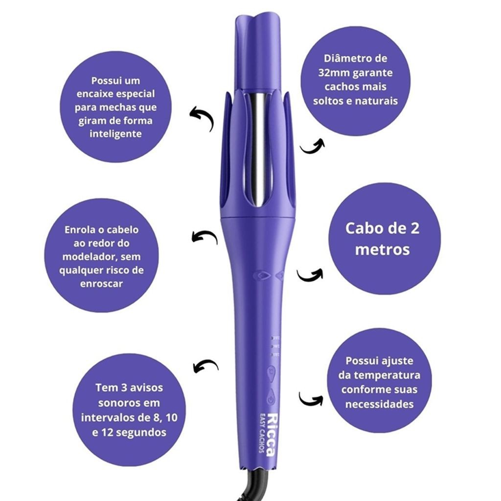 Com o Modelador Automático Easy Cachos Bivolt da Ricca, você conquista cachos perfeitos e com acabamento profissional, de maneira prática e sem complicação. Ideal para quem busca agilidade no dia a dia e resultados duradouros.